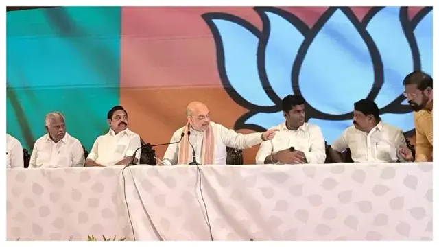 तमिलनाडु की राजधानी चेन्नई में केंद्रीय गृह मंत्री अमित शाह ने के अन्नामलाई और एआईएडीएमके के एडप्पादी पलानीस्वामी के साथ प्रेस कॉन्फ्रेंस की। इस दौरान केंद्रीय गृह मंत्री अमित शाह ने कहा कि AIADMK और भाजपा नेताओं ने फैसला किया है कि AIADMK, भाजपा और सभी गठबंधन दल तमिलनाडु में आगामी विधानसभा चुनाव एनडीए के रूप में एक साथ लड़ेंगे।