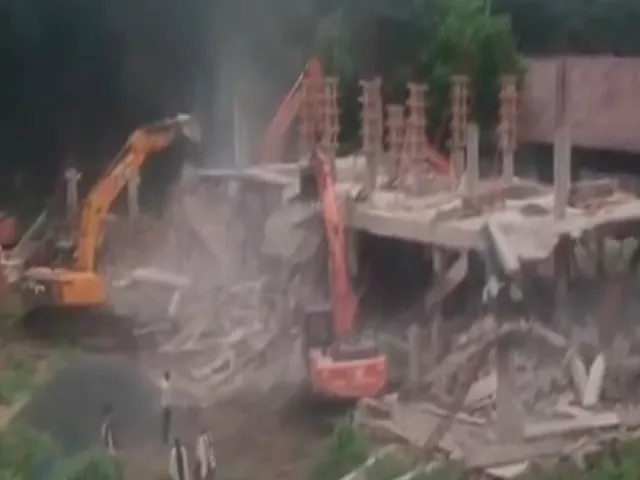 #WATCH | CORRECTION | Amaravati, Andhra Pradesh: YSRCP’s under-construction* central office in Tadepalli was demolished today early morning. As per YSRCP, “TDP is doing vendetta politics.