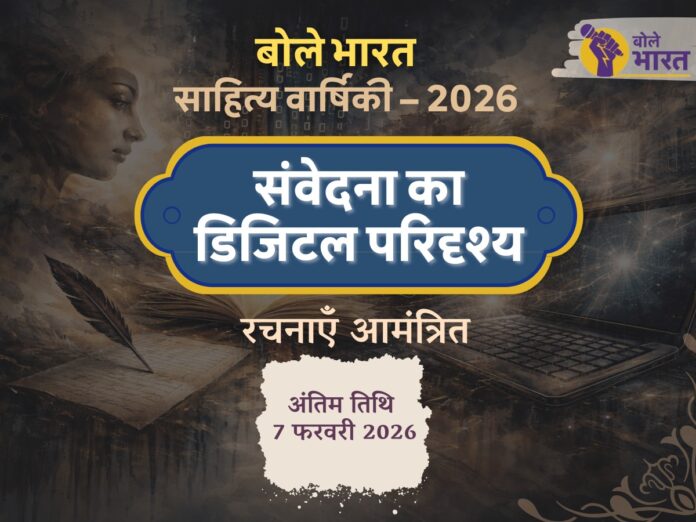 बोले भारत साहित्य वार्षिकी का प्रथम संस्करण ‘संवेदना का डिजिटल परिदृश्य’ इन बदलती संवेदनाओं, उभरती सांस्कृतिक संरचनाओं और वैचारिक द्वंद्वों को समकालीन साहित्य के माध्यम से दर्ज करने का प्रयास है।