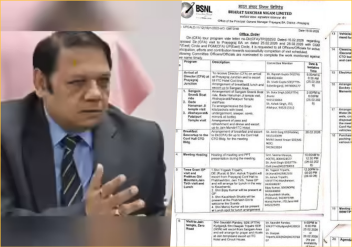 1987 बैच के दूरसंचार सेवा अधिकारी और बीएसएनएल बोर्ड में निदेशक विवेक बंजल को 25-26 फरवरी को प्रयागराज के दौरे पर जाना था। इस दौरे की तैयारियों के लिए जारी एक आधिकारिक पत्र में बेहद अजीबोगरीब और विलासितापूर्ण मांगें शामिल थीं। उनके स्वागत के लिए किए गए ‘शाही’ इंतजामों का 21-सूत्रीय आधिकारिक दस्तावेज सोशल मीडिया पर वायरल होने के बाद इस दौरे को आनन-फानन में रद्द कर दिया गया है।