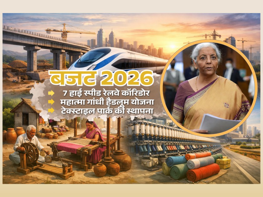 Budget 2026: वित्तमंत्री निर्मला सीतारमण ने वित्त वर्ष 2026-27 के केंद्रीय बजट में 7 हाई-स्पीड रेल कॉरिडोर विकसित करने का ऐलान किया। इससे बड़े शहरों और औद्योगिक केंद्रों के बीच तेज, सुरक्षित और पर्यावरण के अनुकूल कनेक्टिविटी को बढ़ावा मिलेगा। इसके साथ ही महात्मा गांधी हैंडलूम योजना, मेगा टेक्सटाइल पार्क और टेक्सटाइल वैल्यू चेन को मजबूत करने के लिए कई नई पहलों का ऐलान किया। सरकार का साफ संदेश है कि आने वाले सालों में विकास की धुरी इंफ्रास्ट्रक्चर निवेश और श्रम-प्रधान उद्योगों पर टिकेगी।