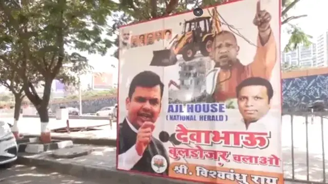 मुंबई: मुंबई में मंगलवार एसोसिएटेड जर्नल्स लिमिटेड ( एजेएल) दफ्तर के बाहर बुलडोजर कार्रवाई की मांग वाले पोस्टर लगे नजर आए। पोस्टर में महाराष्ट्र के मुख्यमंत्री देवेंद्र फड़नवीस से एजेएल दफ्तर पर बुलडोजर चलाने की मांग की गई है। भाजपा कार्यकर्ताओं द्वारा यह मांग नेशनल हेराल्ड केस में गांधी परिवार के खिलाफ प्रवर्तन निदेशालय (ईडी) की कार्रवाई के बाद की गई है। गौरतलब बात यह रही कि पोस्टर में उत्तर प्रदेश के मुख्यमंत्री योगी आदित्यनाथ की तस्वीर प्रमुखता से छपी नजर आई जिसमें लिखा था- “देवा भाऊ, बुलडोजर चलाओ”।