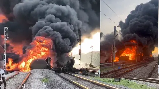 चेन्नई/तिरुवल्लूरः तमिलनाडु के तिरुवल्लूर रेलवे स्टेशन के पास रविवार सुबह एक मालगाड़ी पटरी से उतर गई और उसमें आग लग गई। शुरुआती जानकारी के अनुसार, यह मालगाड़ी डीजल या कच्चा तेल लेकर जा रही थी। आग लगने से चेन्नई–अरक्कोणम रेल मार्ग पर ट्रेन संचालन पूरी तरह बाधित हो गया। हादसे के बाद मालगाड़ी के कम से कम चार डिब्बों में भीषण आग फैल गई, जिससे उठती आग की ऊंची लपटों और काले धुएं ने आसपास के रिहायशी इलाकों में दहशत फैला दी।