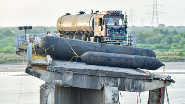 टैंकर को स्थिर करने के लिए पुल के टूटे हुए हिस्से और टैंकर बॉडी के बीच में एयर लिफ्टिंग रोलर कैप्सूल डाले गए। इसके बाद इन टैंकर में हवा भरी गई। इसके बाद क्रेनों की सहायता ली गई।
