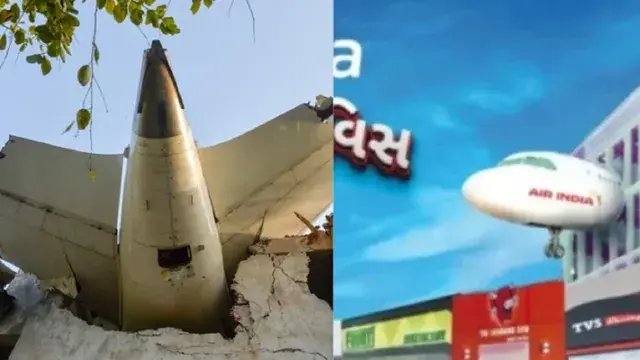 अहमदाबाद हादसे की सामने आई तस्वीरों में विमान क्रैश होकर एक बिल्डिंग में फंसा नजर आया। वहीं गुरुवार को सुबह मिड डे अखबार में छपे विज्ञापन में भी एक ऐसी ही तस्वीर देखने को मिली है, जिसमें भी विमान एक इमारत पर लटका हुआ था।