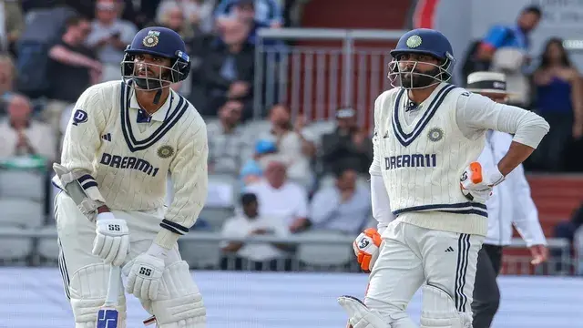 भारत ने दूसरी पारी में 4 विकेट पर 425 रन बनाए। जडेजा 107 और सुंदर 101 पर नाबाद लौटे। पांचवें दिन की शुरुआत भारत ने 2 विकेट पर 174 रनों से की थी। पहले ही सत्र में केएल राहुल और कप्तान शुभमन गिल का विकेट गिर गया। राहुल 90 और गिल 103 रन बनाकर आउट हुए। भारत अपने 4 विकेट 222 के स्कोर पर खो चुका था। यहां भारत पर हार का खतरा था। दिन के पूरे दो सेशन बचे हुए थे।