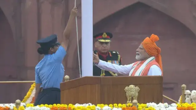 नई दिल्ली: देश में आजादी का 79वां पर्व उत्साह और गौरव के साथ मनाया जा रहा है। इस अवसर पर प्रधानमंत्री नरेंद्र मोदी ने लाल किला की प्राचीर से देशवासियों को संबोधित करते हुए कहा कि ये दिवस 140 करोड़ संकल्पों का महापर्व है। पीएम मोदी ने शुक्रवार को लाल किले की प्राचीर से 12वीं बार ध्वजारोहण किया। इस ऐतिहासिक अवसर पर प्रधानमंत्री के साथ वायुसेना की फ्लाइंग ऑफिसर रशिका शर्मा मौजूद रहीं।