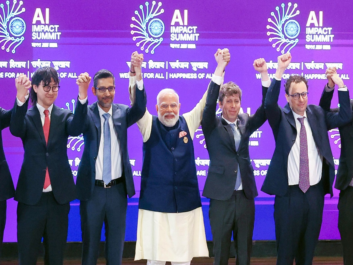 मंच पर प्रधानमंत्री मोदी ने अपने दोनों ओर खड़े दो सीईओ – गूगल के सीईओ सुंदर पिचाई और ओपनएआई के सैम ऑल्टमैन – का हाथ पकड़ा हुआ था। वहीं, अन्य सभी ने भी औपचारिक तस्वीर के लिए अपने साथियों के साथ हाथ मिलाए।