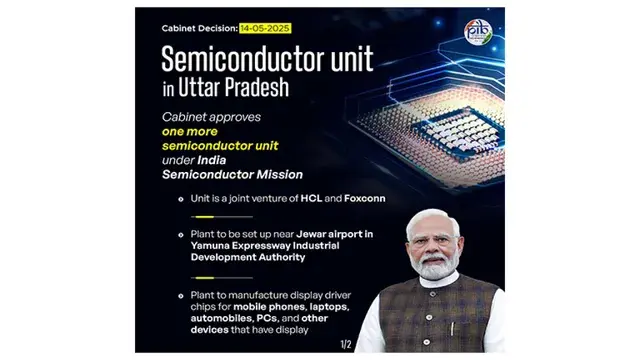 नई दिल्ली: भारत ने सेमीकंडक्टर निर्माण के क्षेत्र में एक और महत्वपूर्ण कदम बढ़ाया है। केंद्र सरकार ने उत्तर प्रदेश के जेवर में एक नई सेमीकंडक्टर निर्माण इकाई स्थापित करने के प्रस्ताव को मंजूरी दे दी है। यह भारत की छठी सेमीकंडक्टर उत्पादन इकाई होगी।