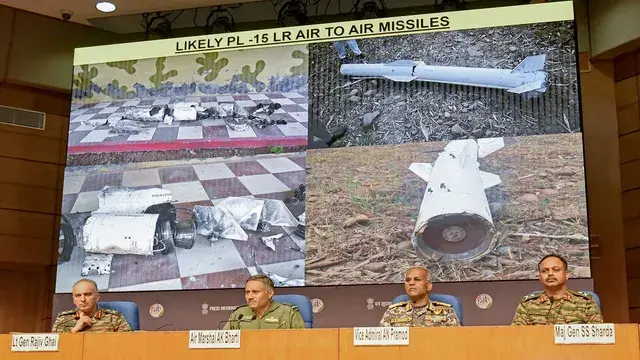 मीडिया को जानकारी देते हुए एयर मार्शल ए के भारती ने भारत के एयर डिफेंस सिस्टम द्वारा गिराए गए मिसाइलों के टुकड़े भी दिखाए। उन्होंने भारतीय क्षेत्र में गिरी पीएल-15 लंबी दूरी की मिसाइल के मलबे को दिखाते हुए कहा, ‘आप स्क्रीन पर इसके टुकड़े देख सकते हैं।’ इसे पंजाब के होशियारपुर से बरामद किया गया था।