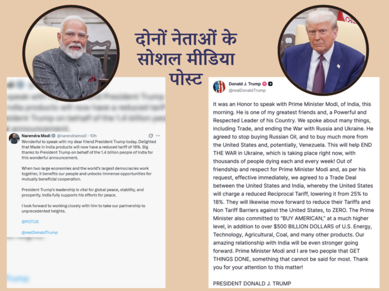 सोमवार को प्रधानमंत्री मोदी ने अमेरिका के साथ व्यापार समझौते की पुष्टि करते हुए राष्ट्रपति ट्रंप की सराहना की। उन्होंने सोशल मीडिया पर लिखा कि मेड इन इंडिया उत्पादों पर शुल्क घटकर 18 प्रतिशत होना 1.4 अरब भारतीयों के लिए बड़ी खुशखबरी है। प्रधानमंत्री ने कहा कि जब दुनिया की दो सबसे बड़ी लोकतांत्रिक अर्थव्यवस्थाएं साथ काम करती हैं, तो इससे लोगों को सीधा लाभ होता है।