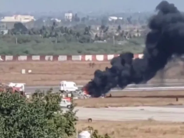 Porbandar, Gujarat: A helicopter crashed at Porbandar airport, causing an explosion. Fire brigade and medical teams reached the site immediately pic.twitter.com/KacWkXFYj0