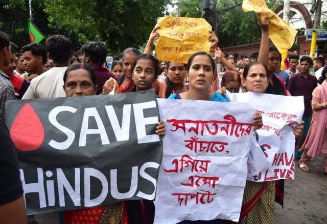 हजारों की संख्या में हिंदू शनिवार को चटगांव में इकट्ठा हुए और समुदाय पर हो रहे हमलों के खिलाफ एक विशाल विरोध रैली निकाली। उन्होंने देश के नागरिकों के रूप में सुरक्षा और समान अधिकारों की मांग की।