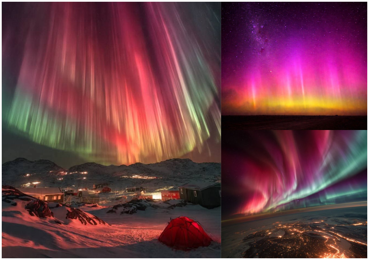 इस शक्तिशाली तूफान के कारण धरती के चुंबकीय क्षेत्र में भारी हलचल हुई, जिसकी वजह से दुनिया के उन हिस्सों में भी ऑरोरा (नार्दन लाइट्स) यानी रंगीन रोशनी का नजारा देखा गया, जहां यह आमतौर पर नहीं दिखता। अमेरिका के 24 राज्यों समेत सैन फ्रांसिस्को, शिकागो और अलास्का में आसमान गुलाबी, हरे और बैंगनी रंगों से भर गया। यूरोप के फ्रांस, जर्मनी, ऑस्ट्रिया, स्विट्जरलैंड और क्रोएशिया जैसे देशों में भी लोगों ने इस अद्भुत नजारे को कैमरे में कैद किया।