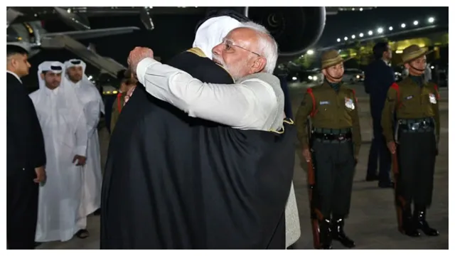 नई दिल्ली: कतर के अमीर शेख तमीम बिन हमद अल-थानी दो दिनों के दौरे पर भारत पहुंचे हैं। ऐसे में प्रधानमंत्री नरेंद्र मोदी प्रोटोकॉल तोड़कर सोमवार शाम खुद एयरपोर्ट जाकर कतर के अमीर अल-थानी का स्वागत किया। इस दौरान उन्होंने कतर के अमीर से गले लगकर गर्मजोशी से उनका स्वागत किया। वहीं विदेश मंत्री डॉ एस जयशंकर समेत कई अन्य अधिकारी मौके पर मौजूद रहे। बता दें कि, कतर के अमीर शेख तमीम बिन हमद अल थानी 17-18 फरवरी को भारत की राजकीय यात्रा पर पहुंचे हैं।