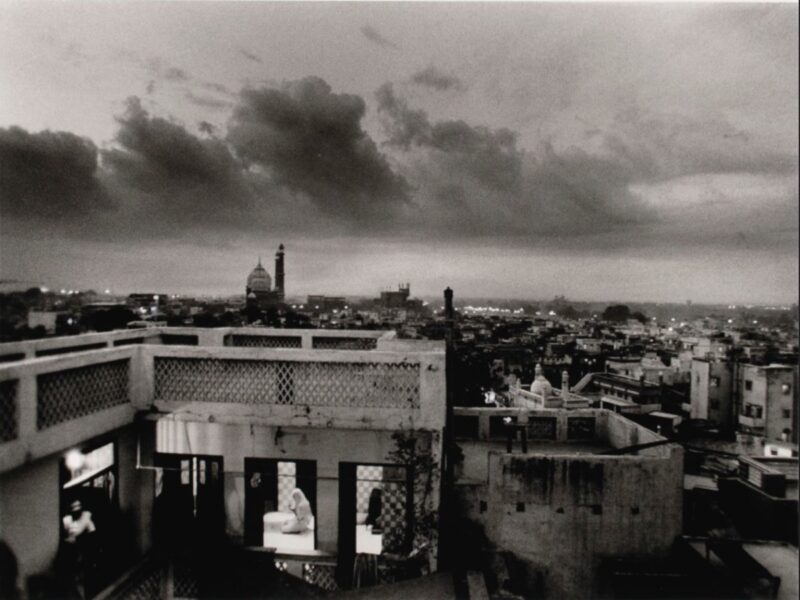 ‘इवनिंग प्रेयर, जामा मस्जिद, दिल्ली’ (1985) याद कीजिए, क्षितिज पर सफ़ेद-सुरमई-धूसर बादलों के नीचे मद्धिम झिलमिलाती रौशनी के बीच दूर तक फैला पुरानी दिल्ली का भू-दृश्य, घर-मकान-मीनारें—पार्श्व में जामा मस्जिद और सामने की तरफ़ एक रिहाइश के एक रौशन कमरे में इबादत करती एक युवती के दुआ के लिए उठे हाथ। तस्वीर के बड़े हिस्से में फैले धुंधलके के बीच वह ज़रा-सी रौशनी, वह नूर, समूचे फ़्रेम को अनायास ही मुक़द्दस बना देता है।