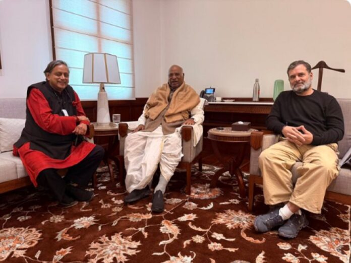 बैठक की एक तस्वीर भी सोशल मीडिया पर शेयर की गई जिसमें थरूर, राहुल और खड़गे मुस्कुराते हुए नजर आ रहे हैं।