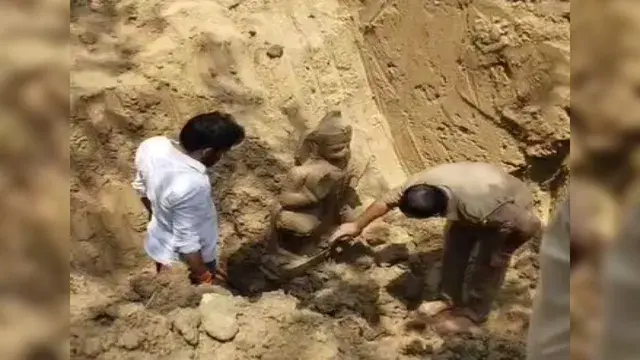 सुल्तानपुरः सुल्तानपुर जिले के कूरेभार क्षेत्र के फूलपुर गांव में हनुमान जयंती के अवसर पर एक घर में खुदाई के दौरान लगभग पांच फीट लंबी प्राचीन हनुमान जी की मूर्ति प्राप्त हुई है। यह घटना उस समय घटी, जब गांव निवासी कालीदीन पांडेय अपने घर के बाहर शौचालय के टैंक के लिए जेसीबी से गड्ढा खुदवा रहे थे। खुदाई के दौरान जेसीबी के किसी ठोस चीज से टकराने की आवाज आई, जिसके बाद मजदूरों से सावधानीपूर्वक खुदाई करवाई गई। धीरे-धीरे जब खुदाई आगे बढ़ी तो एक विशाल पत्थर की मूर्ति बाहर आई।