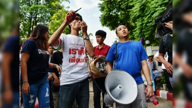 प्रदर्शनकारियों की भारी भीड़ बैंकॉक के विक्टरी मॉन्यूमेंट वॉर मेमोरियल के पास इकट्ठा हुई, जहां वे झंडे लहराते और “प्रधानमंत्री देश की दुश्मन हैं” जैसे नारे लिखे पोस्टर थामे हुए थे। भीड़ ने मूसलाधार बारिश के बावजूद प्रदर्शन जारी रखा।
