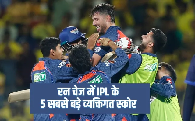 लक्ष्य का पीछे करने उतरी लखनऊ की टीम ने चेन्नई सुपर किंग्स को छह विकेट से हरा दिया। स्टोइनिस 63 गेंदों में 124 रन बनाकर नाबाद रहे और एलएसजी ने 211 रनों के लक्ष्य को तीन गेंद शेष रहते हासिल कर लिया। आईपीएल इतिहास में कई ऐसे रन चेज देखने को मिले हैं जिन्होंने दर्शकों को चौंका दिया और रिकॉर्ड बनाए। आज हम उन 5 सबसे बड़े व्यक्तिगत स्कोर पर नजर डालेंगे जो रन चेज के दौरान हासिल किए गए थे।