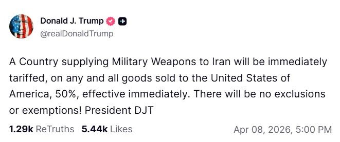 एक तरफ ट्रंप ने जहां अगले चरण की बातचीत में टैरिफ और प्रतिबंधों में ढील को अहम मुद्दा बताया तो दूसरी तरफ उन्होंने यह चेतावनी देकर सबकी चिंताएं बढ़ा दी कि जो भी देश ईरान को सैन्य हथियार सप्लाई करेगा, अमेरिका को बेचे जाने वाले उसके सभी सामानों पर तत्काल प्रभाव से 50 प्रतिशत टैरिफ लगा दिया जाएगा। इसमें कोई छूट या रियायत नहीं मिलेगी।