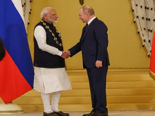 #WATCH | Russian President Vladimir Putin confers Russia’s highest civilian honour, Order of St Andrew the Apostle on Prime Minister Narendra Modi. pic.twitter.com/aBBJ2QAINF