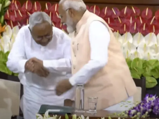 पीएम मोदी को संसदीय दल का नेता चुनने के लिए जदयू के समर्थन की घोषणा करने के बाद बिहार के सीएम नीतीश कुमार उनका पैर छूना चाह रहे थे। लेकिन, पीएम मोदी ने उन्हें ऐसा करने से रोका और उनके हाथ को अपने हाथ में थाम लिया।