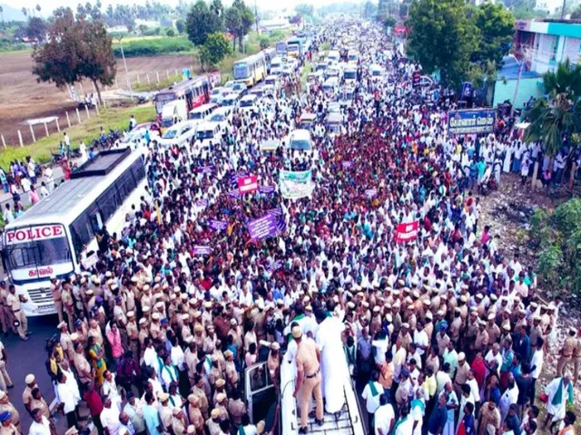 मदुरैः तमिलनाडु में मदुरै जिले के मेलूर और आसपास के 40 गांवों के किसानों ने मंगलवार टंगस्टन परियोजना के विरोध में विशाल रैली निकाली। किसानों को डर है कि इससे उनकी आजीविका को नुकसान होगा। मंगलवार उन्होंने नरसिंघमपट्टी पेरुमल मंदिर से तल्लाकुलम प्रधान डाकघर तक रैली निकाली। समर्थन में सब्जी और आभूषण दुकान मालिकों सहित व्यापार संघों ने अपना कारोबार बंद कर दिया, जिससे मेलूर में सामान्य जीवन बाधित हो गया। किसानों ने अपनी मांगें पूरी होने तक विरोध जारी रखने की बात कही है।