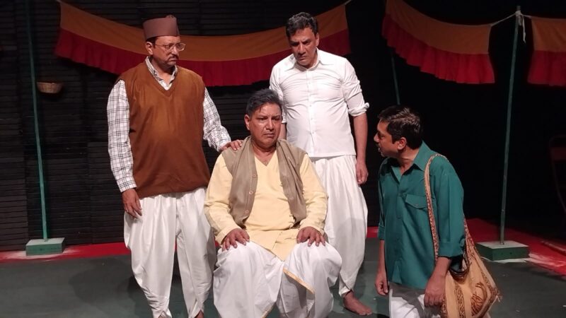 यह नाटक 2014 में तैयार हुआ था, देश भर में इसे ख़ूब सराहना मिली। कई वर्षों के अंतराल पर इधर फिर से इसका मंचन शुरू हुआ। अब तक इसके सौ से ज्यादा शो हो चुके हैं। चारों अनुभवी रंगकर्मी शुरू से ही इसका हिस्सा रहे हैं। नाटक के केंद्रीय चरित्र सत्यशील की भूमिका करने वाले कुमुद मिश्रा अपनी भूमिका की प्रशंसा सुनकर अब भी संकोच से भर जाते हैं, कुछ-कुछ असहज भी। बक़ौल कुमुद, उनकी इस भूमिका में अभी वह तासीर पैदा होने की क़सर बाक़ी रह गई है कि मंच पर उनके आते ही दर्शकों को अंदाज़ हो जाए कि वे आँखों की रौशनी खो रहे एक बूढ़े को देख रहे हैं। उनकी सौम्यता से वाक़िफ़ लोग उनकी इस बात का मर्म आसानी से समझ सकते हैं, हालाँकि ‘कौमुदी’ के पुराने दर्शक मानते हैं कि इस भूमिका में उनका अभिनय और पुख़्ता, कहीं ज़्यादा सहज और परिपक्व हुआ है। मंच के एक कोने में फ़्रीज़ शुभ्रज्योति बराट के भावशून्य चेहरे पर आँखों की भंगिमा और मंच से परे होने पर हाथ-पाँव की हरकतें देखने वालों को उनके किरदार से जोड़े रखती हैं। गोपाल दत्त तिवारी और संदीप शिखर हमेशा की तरह प्रभावित करते हैं।